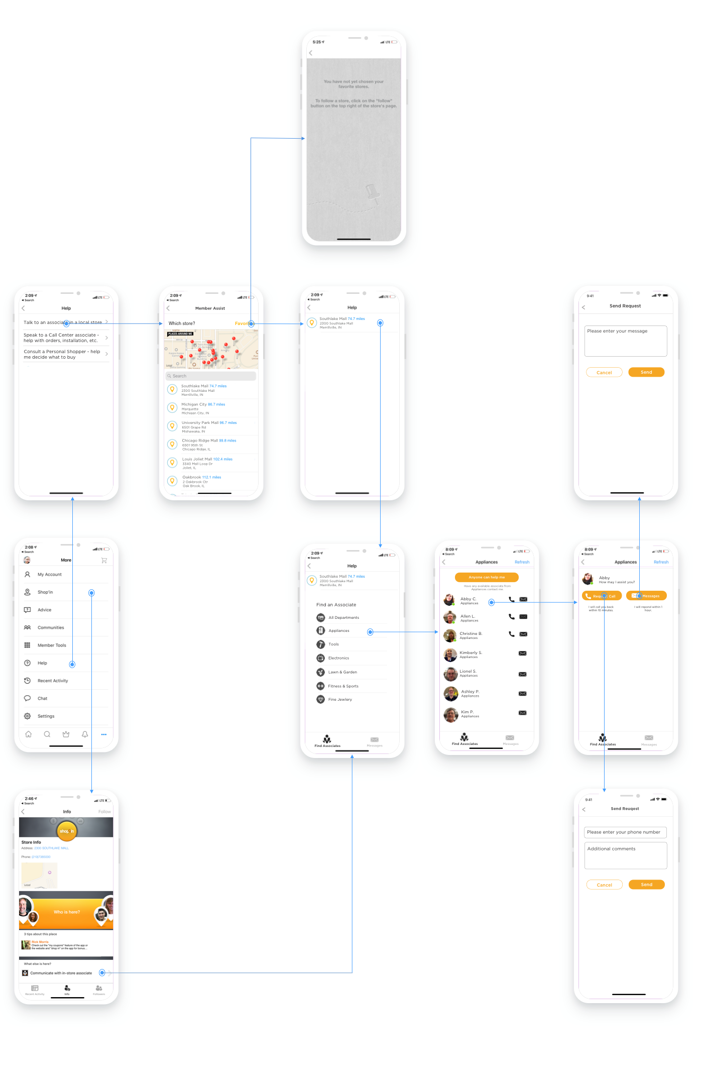 Each year call center receives 6.1 M calls from customers requesting answers only store associates at the local store can answer. 1.7 M calls of the 6.1M got redirected to local stores. To provide better customer service and reduce unnecessary calls to call center. I designed member assist app to allow customers to talk directly to store associates.