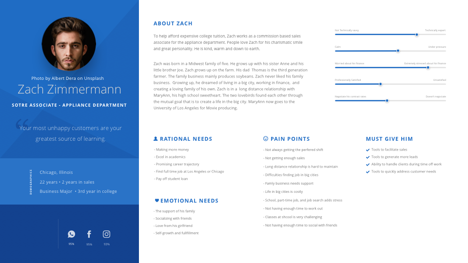 How I did it: I worked with product manager to brainstorm user persona, user scenarios, and use cases. Product manager documented use cases and user scenarios. I created user persona and storyboards with Sketch.