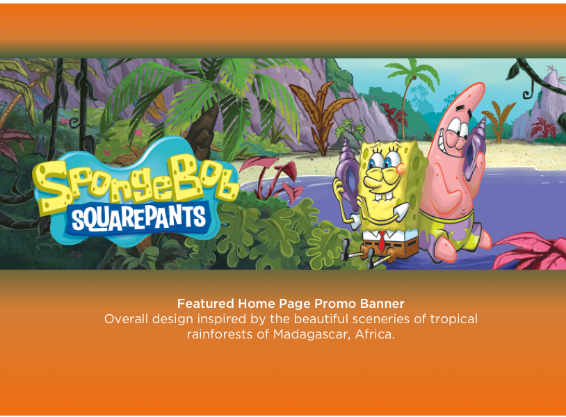 To match Nickelodeon US website standards and attract local population, MTV internation team initiated the redesign of Nickelodeon Africa and Brazil websites. In order to achieve this goal, I created web assets that would reflect local aesthetic and demographics.